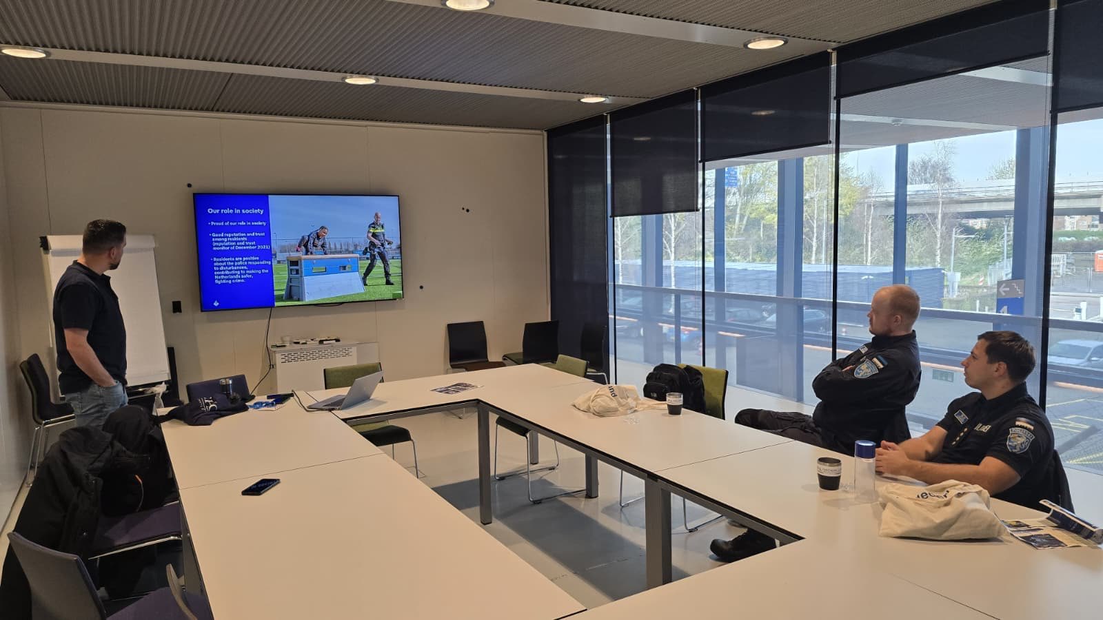 Viimasel päeval tutvusime Haagis märulipolitsei treeningutega. Madalmaade politsei on tugevalt keskendunud jalgpallimängude ja suurte ürituste turvamisele, seetõttu on nende kogemused märulite ja rahutuste tõkestamises tunduvalt suuremad kui meil Eestis.